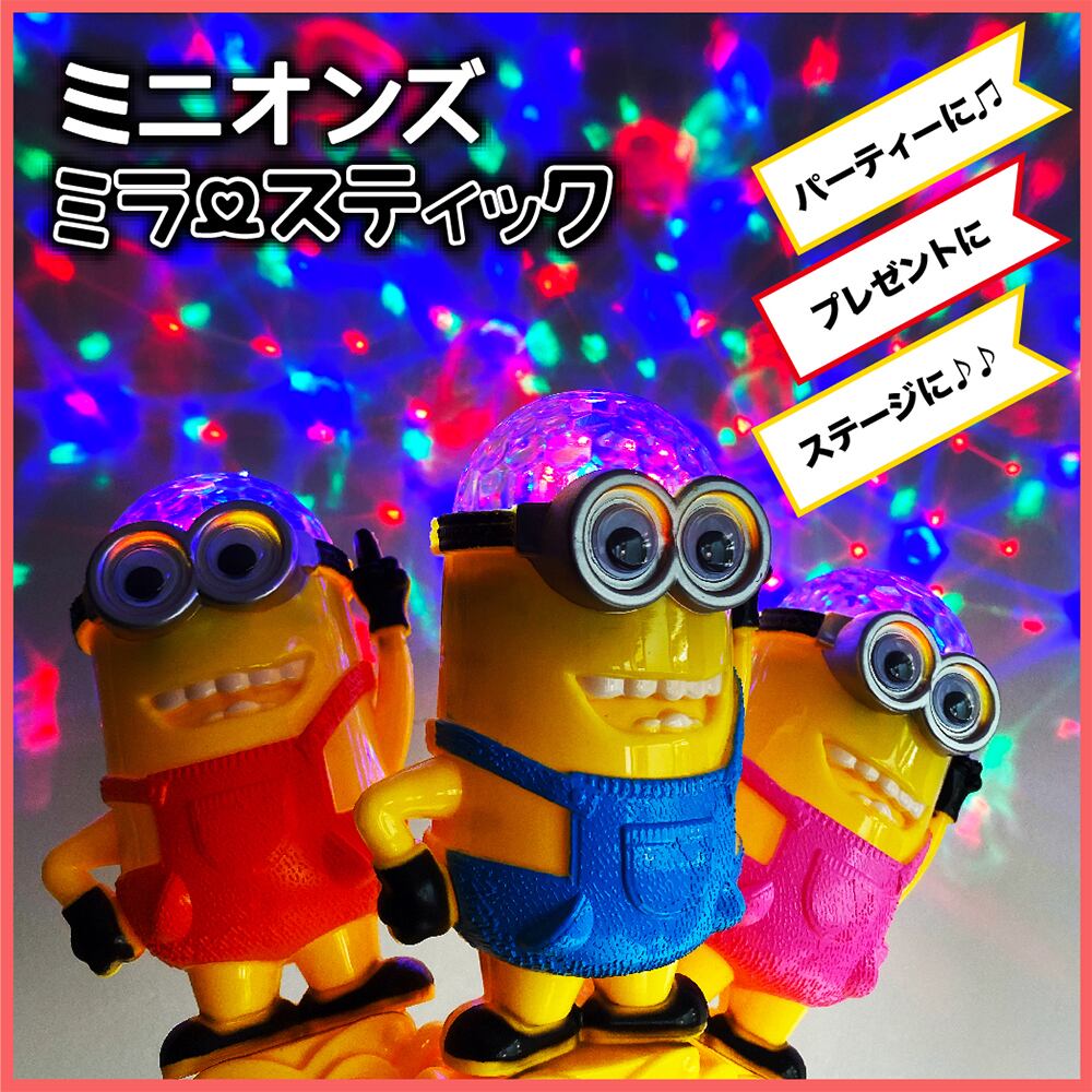 人気キャラクター、ミニオンズの光るミラーボールスティックです。