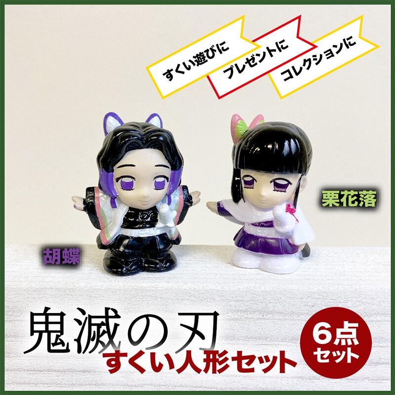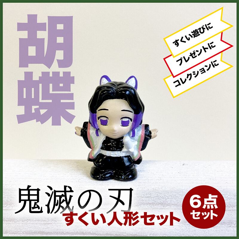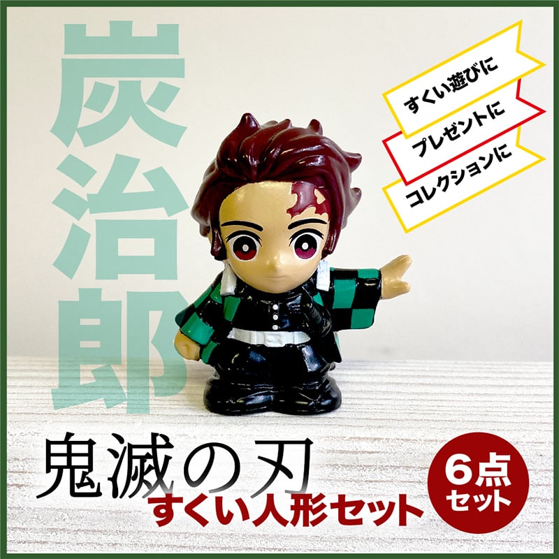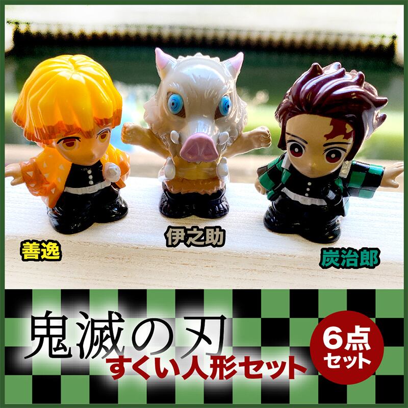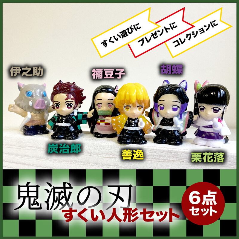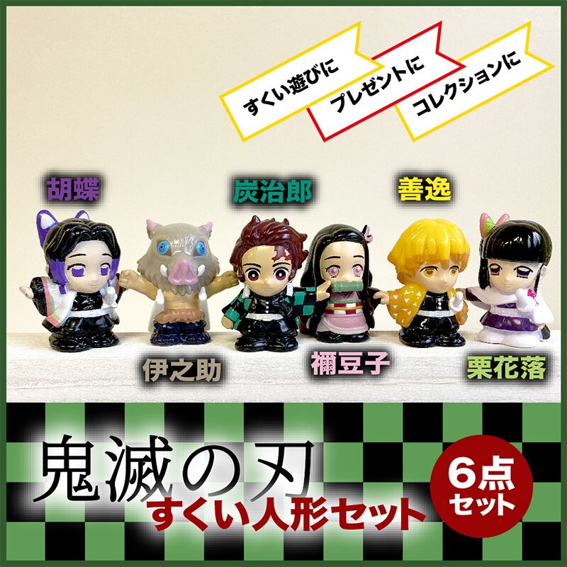 縁日やイベントでないと、なかなか手に入らないキャラクターすくい人形に、人気アニメ鬼滅の刃」が登場!同アニメに登場する竈門炭治郎・竈門彌豆子・我妻善逸・嘴平伊之助に、この度新入荷しました胡蝶しのぶ・栗花落カナヲを加えた6種セットです。