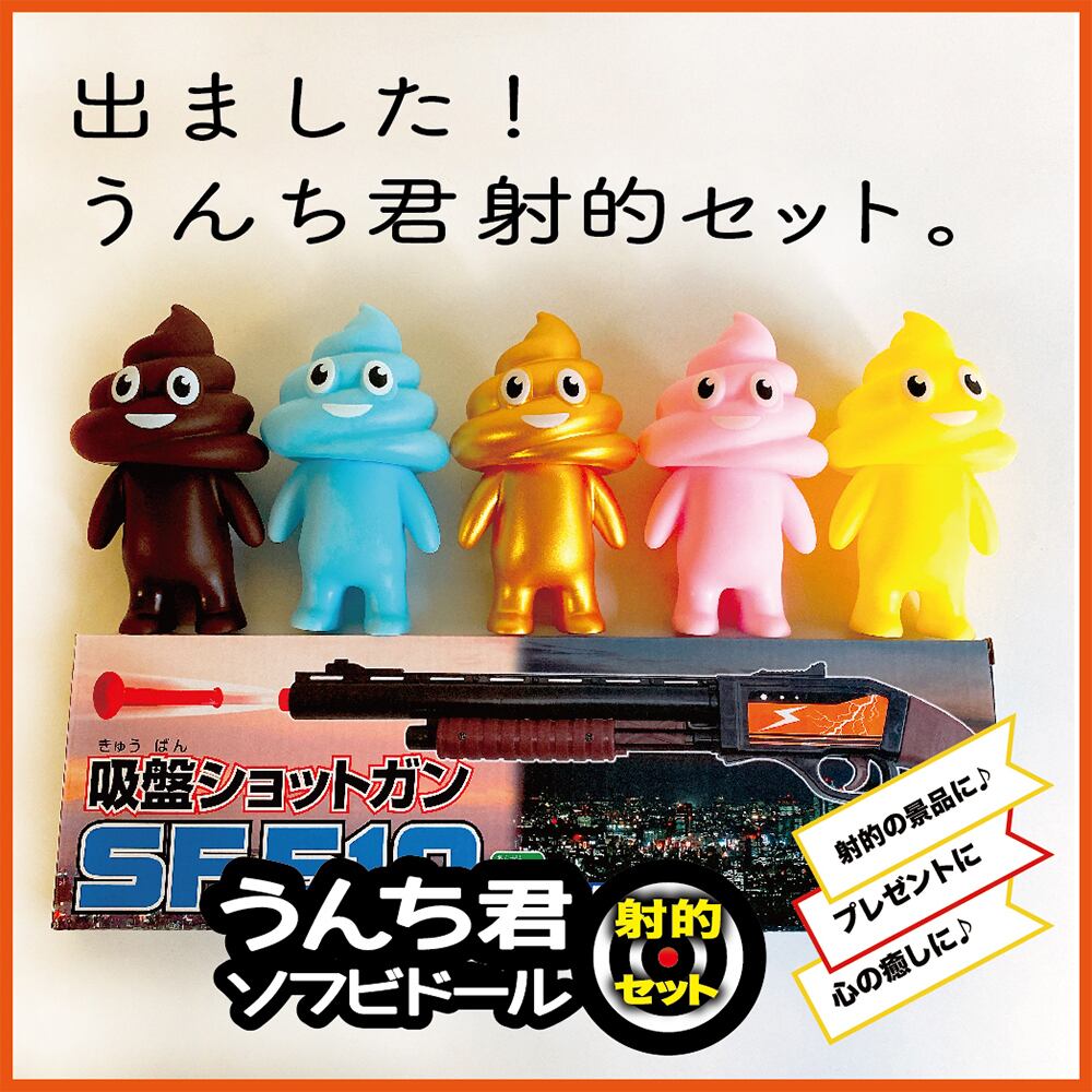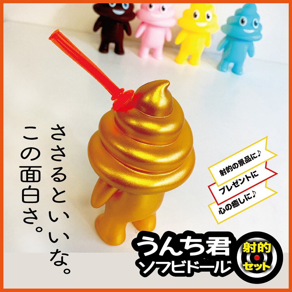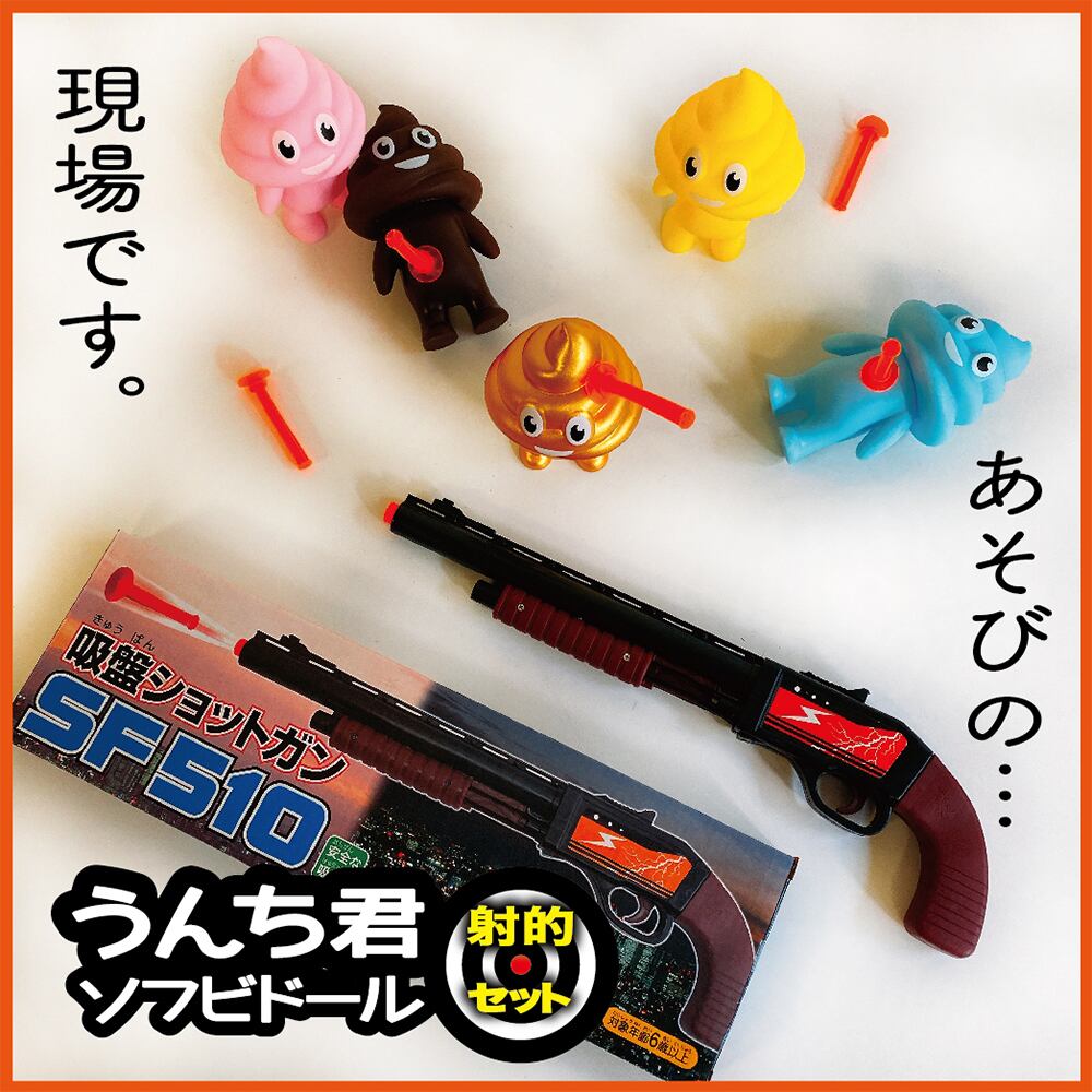 ちびっこの大好きな「うんち」のソフビ人形を的に射的あそび♪「うんち君ソフビドール」5個と吸盤ショットガン1個のセットとなっております。吸盤ショットガンの吸盤は柔らかいので少々当たっても痛くない!(でも人や生き物に向けて撃たないでね。)