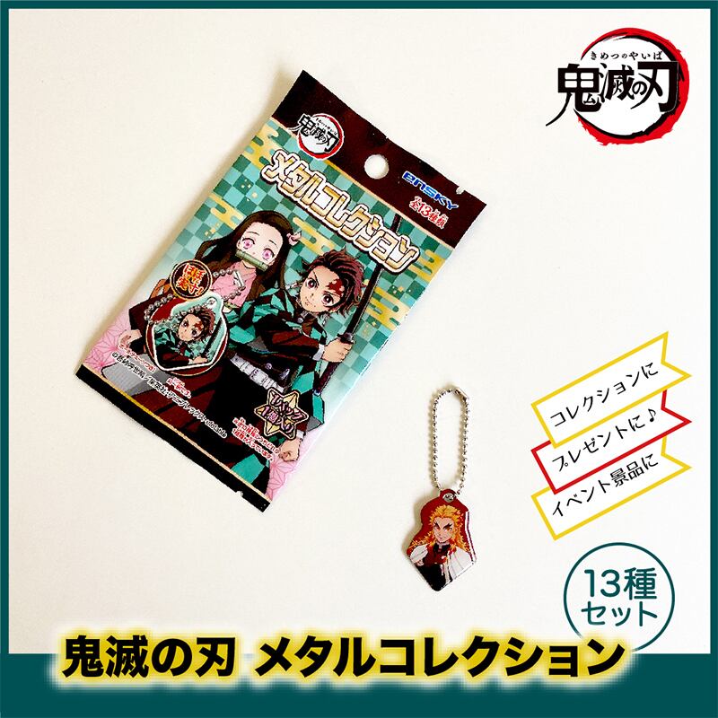 鬼滅の刃メタルコレクションが登場!約3cmほどのミニサイズのボールチェーン付きのものとなっております。13種はいっておりますが、個包装の中は、何が入っているかは???です。景品やプレゼント、コレクションにいかがですか!?