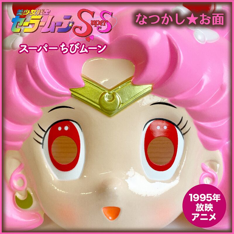 なつかしのお面シリーズ。1992年にスタートした人気アニメ「セーラームーン」。現在も根強いファンも多く、2年ほど前には関西の某テーマパークに期間限定アトラクションができたり、たくさんのミュージカル化をされたりもしていました。今回紹介するのは、1995年にOAされた「セーラームーンSuperS」のちびムーンのお面です。