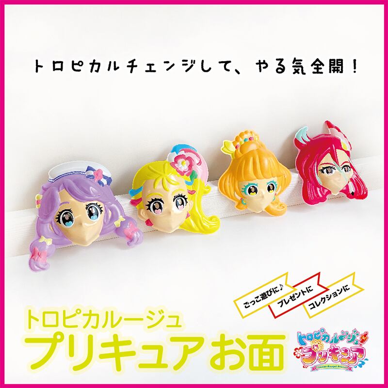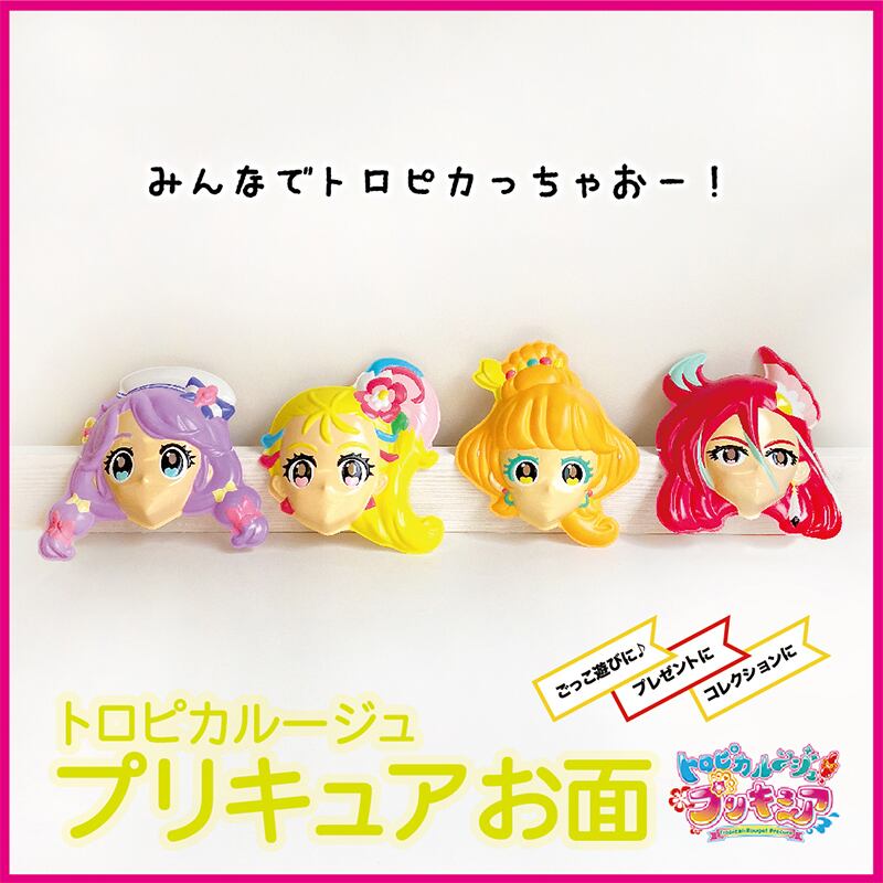 現在OA中の「プリキュアシリーズ」最新作「トロピカルージュ!プリキュア」のお面です。「キュアサマー」「キュアコーラル」「キュアパパイヤ」「キュアフラミンゴ」の4種ございます。おうち縁日はもちろん、「プリキュアごっこ」するも良し、プリキュア好きな方へのプレゼントやコレクションに!