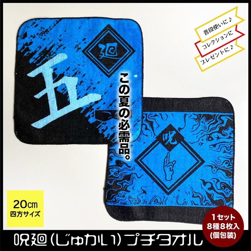 今話題の「呪」モチーフ。これからの季節の必需品のプチタオルです。約20cm四方と、ポケットに入れやすい、持ち運びやすいサイズです。感染症予防に欠かせない手洗いや、汗を拭いたりなど、とにかく洗い替えが必須なアイテム。8柄セットとなってますので、気分に合わせて使い分けてはいかがでしょうか!?販促品や景品・プチギフトにもピッタリですよ♪