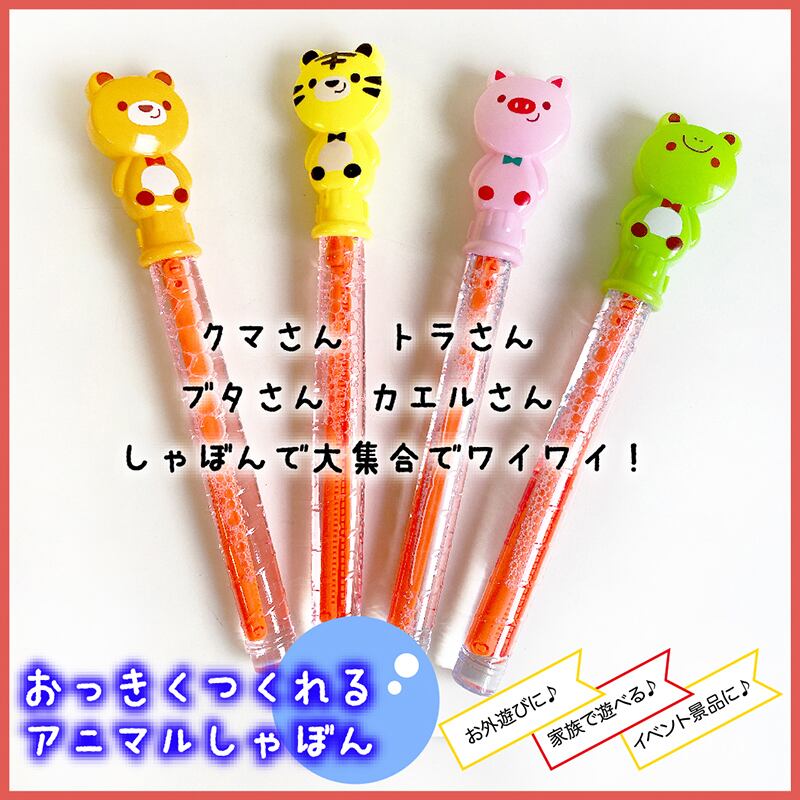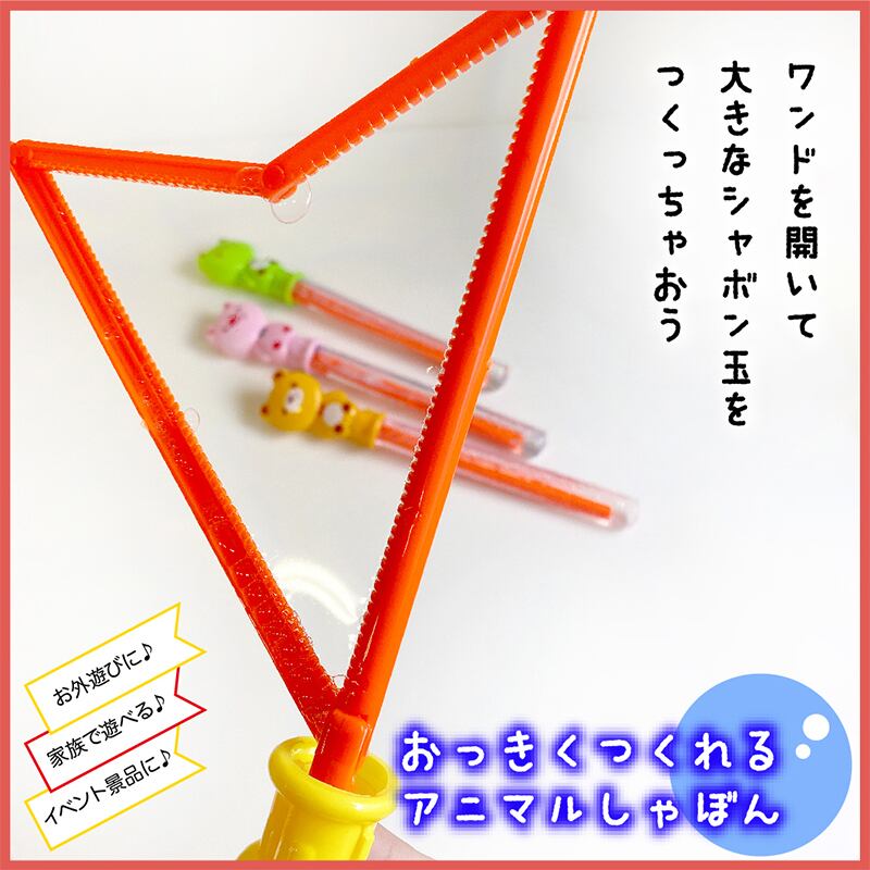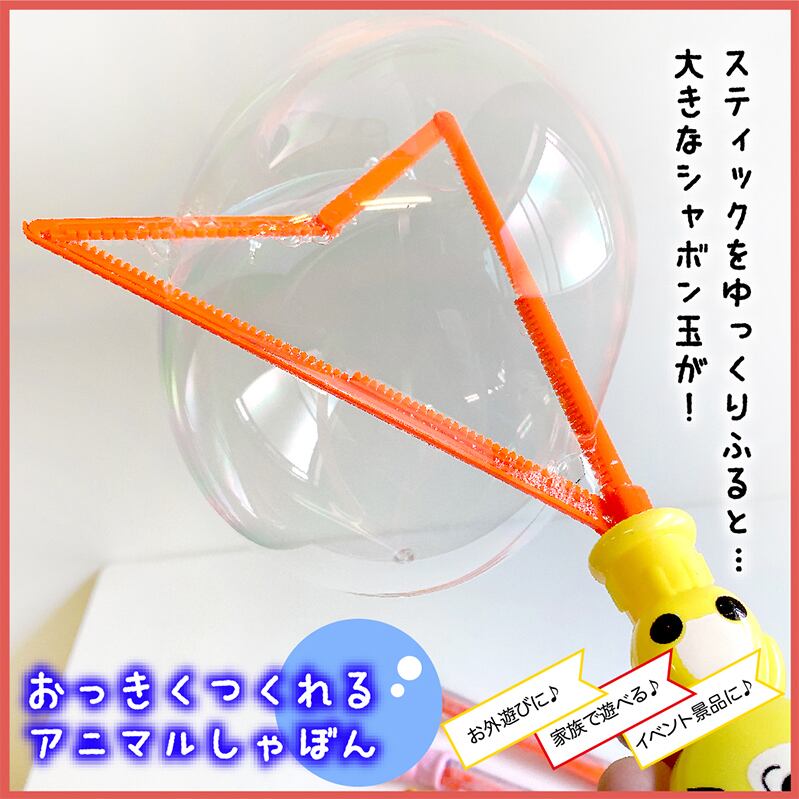 「おそとあそび」で定番人気のアイテム、しゃぼん玉。かわいいどうぶつさんたちのスティックを持ってしゃぼん玉遊びを楽しもう♪しかも!ワンドが大きく開くので、大きなしゃぼん玉ができちゃいます!エモい動画を作るのにもピッタリですよ♡